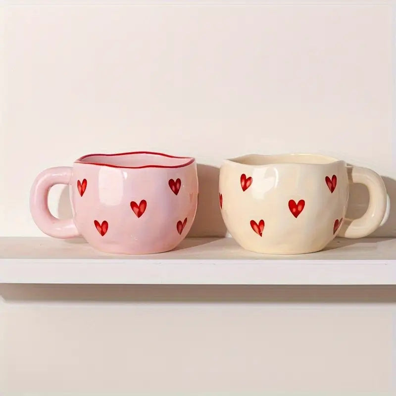 يتميز هذا الكوب الخزفي الساحر بنمط قلوب حمراء مبهجة، مما يجعله هدية مثالية للأزواج، أو المناسبات الخاصة، أو لأي شخص يحب لمسة رومانسية في يومه.